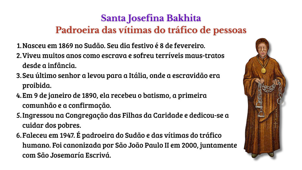 O cardeal Leonardo Ulrich Steiner, arcebispo de Manaus e presidente do Regional Norte 1, gravou um vídeo durante o encontro anual dos bispos do regional, destacando o “belíssimo testemunho de fé” de Santa Josefina Bakhita. Ao final do encontro, que aconteceu na Diocese de Borba entre os dias 2 e 5 de fevereiro, os bispos reforçaram o apelo ao combate do tráfico de pessoas.